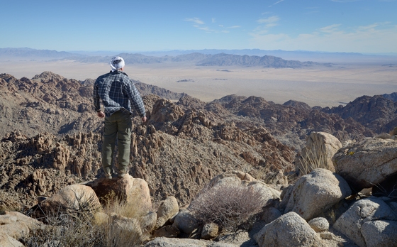 "Hiker on Aqua Peak Summit Looking East." Joshua Tree National Park, California.