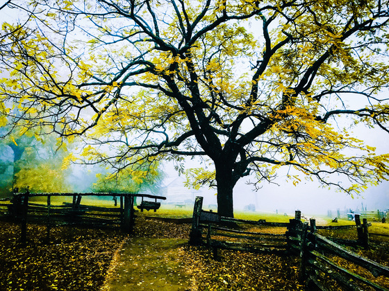 The fog, the fence and the fall colors all add up to urge anyone visiting the area to take a walk and know more and fill more of self with happiness!