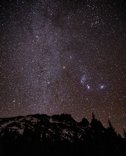 The Milky Way rises over the Nokhu Crags in Colorado's back country. One must venture far out nowadays to see the our beautiful galaxy and the national parks and forests make this view possible. Those who believe themselves the center of the universe just haven't seen how small they are in the infinite cosmos.