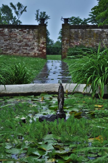 Fountain and walkway in Chatham Manor garden
