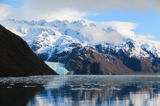 An overnight trip to Aialik Glacier in Kenai Fjords National Park began as a cold and rainy day, with the glacier covered in clouds. After a wet paddle, a warm meal, and a good night's sleep, we awoke to sun shining through the clouds. This view made the trip entirely worth it.