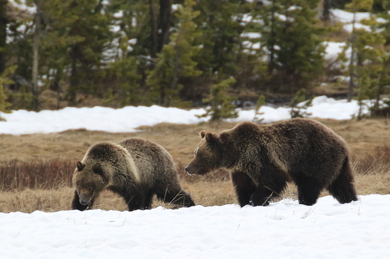 These two grizzly bears were digging in the snow near Canyon Village. I assume they were looking for food. They were several hundred yards from the road. I used my telephoto lens with an extender to take this photo.