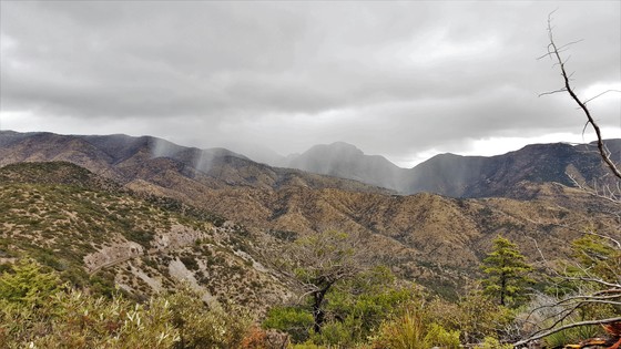 Rain moves across the mountains of Chiricahua National Monument.