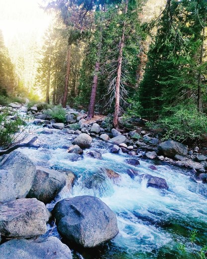 The crystal waters of the fresh melted winter snows, with the glistening summer sun dancing through the trees. Tokopah Falls is a breath taking sight.