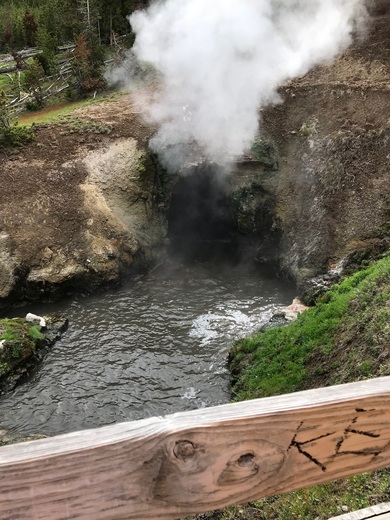 Geyser from a cave/ tunnel at Yellowstone National Park