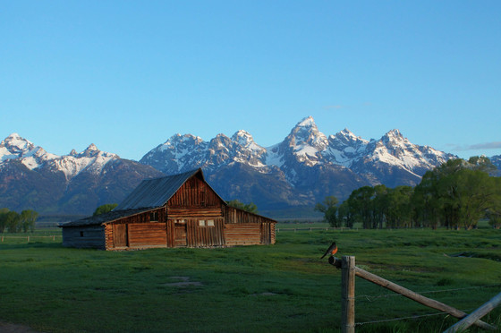 A robin enjoying the Grand Tetons from Mormon Row.