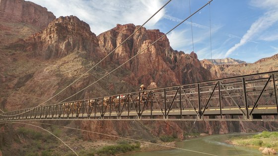Mules crossing the Colorado river, taking supplies to Phantom Ranch
