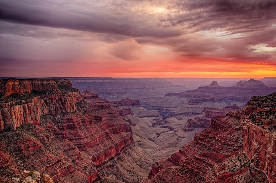 Sunset at Cape Royal - The last stop at my summer trip to the National Parks was at the North Rim of the grand canyon. This was my second visit to the grand canyon and I was thrilled to see the Sunset at Cape Royal because I had heard it was a great location for sunset. And it was really worth it. It was quite cloudy and I hoped for a good sunset and I was not disappointed. It was one of the best I've seen in the national Parks and I hope the photo captured it.