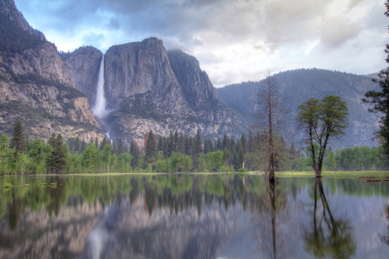 Spring Reflections. Yosemite Falls reflected in the flooded valley.