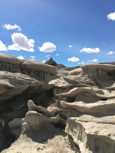 During March of 2018, my husband and I left our midwestern home in search of scenic views and blue skies. We found both in the Bisti/De-Na-Zin Wilderness Area! We love hiking and I believe this photo captured the surreal beauty of the wilderness area.