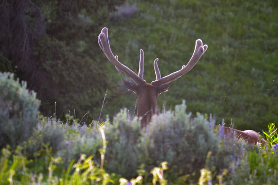 Bull elk from behind.