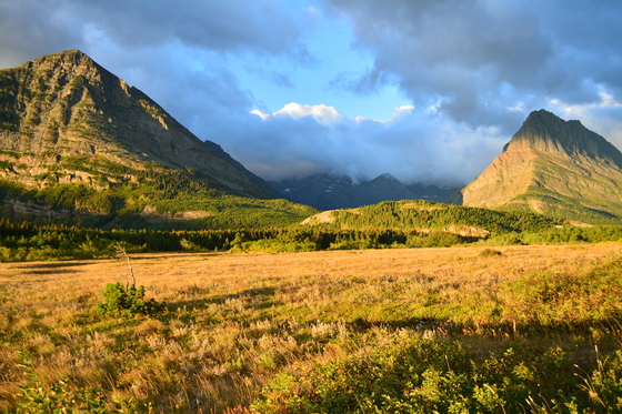 Early morning light hits the majestic peaks at Glacier National Park, Montana