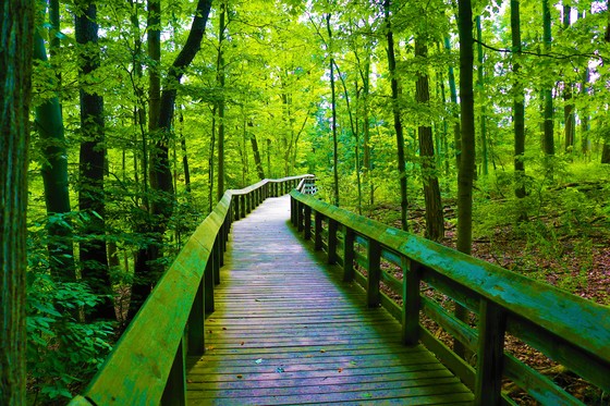 A Park Walkway....The greenish moss look on the walkway and with the shady trees gave this a colorful cool look.