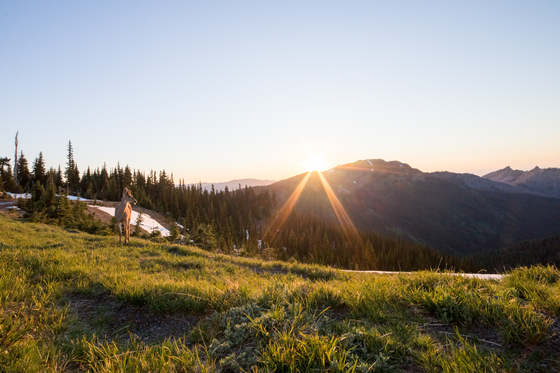 Deer Wandering at Sunset. Hurricane Ridge.