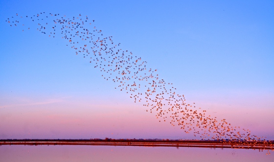 One of my favorite things to do is to watch the migratory birds perform their routine dance at dusk over the calm water of Yolo wetlands.