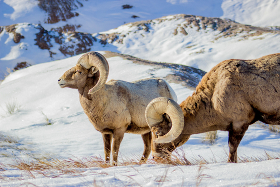 These two bighorn rams pawed at grass hidden beneath a frozen crust. I found them near sunset. As I peered over a ridge to get the shot they lifted their heads to smell the air. The bighorns of Badlands National Park have survived significant conservation challenges and I was glad to get a glimpse of these healthy looking males.