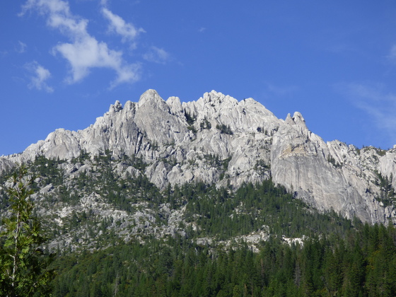 Castle Crags Wilderness. This view is looking northwest from Castle Creek Road at about 4300 feet in the Shasta Trinity National Forest. I was on a 20 mile bike trip up this steep road and when I came around a bend I was stunned by this view of Castle Crags. Possibly the first photo ever taken of the Crags from this spot.