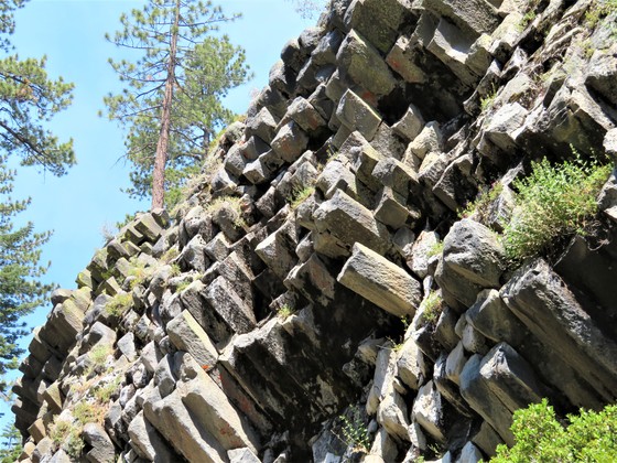 Postpile formation is one of the finest examples of visible basaltic columns in the world. Lava and glacier ice shaped these unusual rock columns nearly 100,000 years ago.