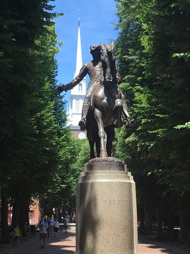 Paul Revere statue with the Old North Church in the background