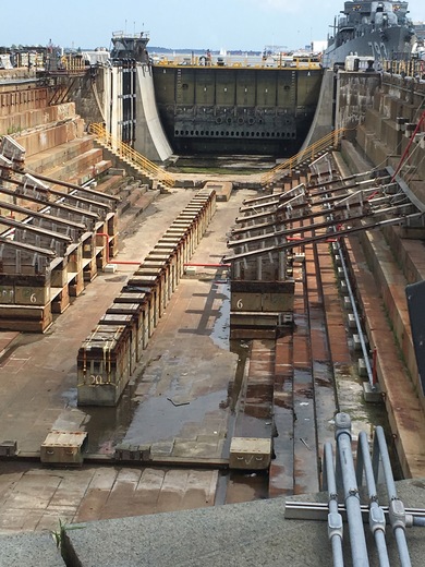 Dry Dock 1 with the U.S.S. Cassin Young in the background.