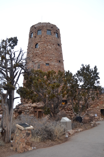 The Desert View Watchtower is located on the rim of the canyon and reflects the architecture of the ancestral Puebloans in the Four Corners region of the US. You can climb the stairs for views up and down the canyon. On a clear day you're able to see over 100 miles.