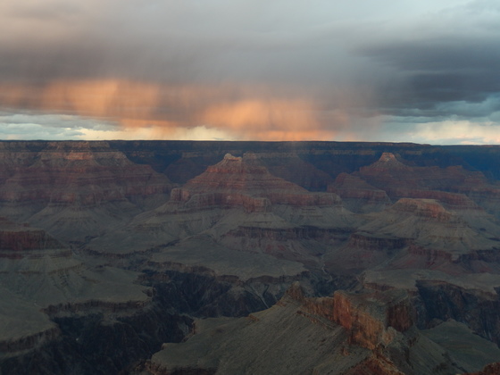 The Grand Canyon at Sunset with a rainstorm in the distance