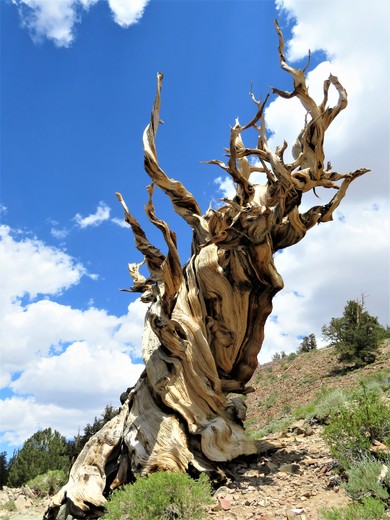 Located at White Mountains of the Inyo National Forest, some of the bristlecone pine trees here are over 4000 years old. The key to the bristlecones longevity is location. "Not in Spite of Adversity but Because of It!"
