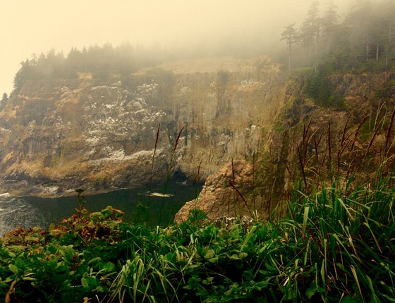Then fog resting in Cape Meares Rainforest on the freshly rained on trees and plants