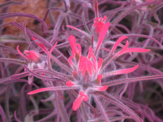 We visited the Red Cliffs Desert Reserve hoping to spot some desert wildlife - lizards, gilas, tortoises. Animals were still hibernating, but we saw gorgeous blooming cacti and came across this unworldly vibrant blooming plant. Such surprises await those willing to take the time to look!