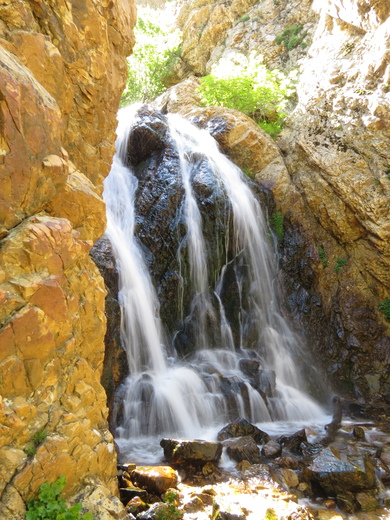 One of the perks of living in the dry Utah desert is the lack of mosquitos while hiking. Heugh's Canyon broke all the desert rules as we hiked under the shade of trees growing along a flowing stream. The gorgeous waterfall hidden around the bend of a boulder field was well worth the bug bites I received. Ecological niches are such a delight to discover!