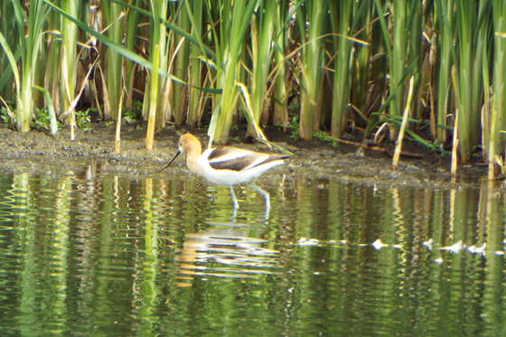 Avocet feeding along shoreline