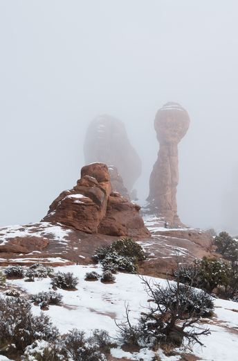 Guardian of the Garden of Eden Winter in Arches is magical especially when the cloud cover is low.