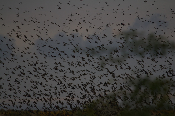 The two times that I have been to Sonny Bono National Wildlife Refuge in California, I have been impressed by the large numbers of birds. This is a shot of a group of Red-wing Blackbirds taking flight.