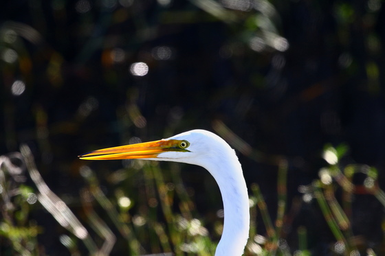 The signs on Pintail Wildlife Drive in Cameron Prairie NWR said not to exit the vehicle except in the approved parking areas, so this shot of a backlit Great Egret was taken from the driver's seat of our motorhome.