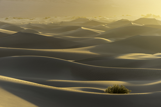 Mesquite Sand Dunes at sunrise. While it was not that hot yet (82) shooting into the sun makes it look like a furnace