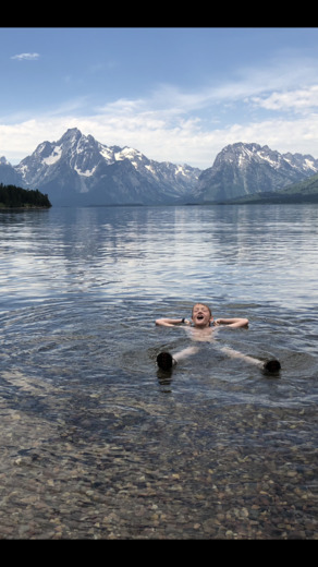 This is a photo of my nephew doing the best he can to relax on a hot day at Jackson lake.