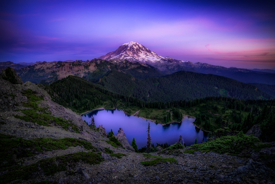 Sunset over Mt. Rainier from Tolmie Peak lookout