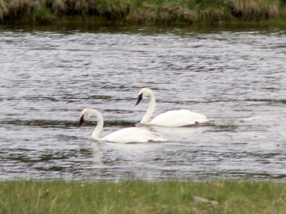 I managed to capture these two Trumpeter Swans swimming on the Firehole River. I used a Fuji DX camera.