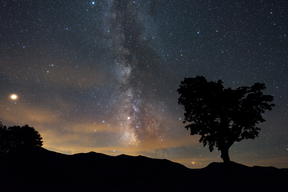 In July, I visited White Mountains region with Family. While the day was full of fun filled activity for kids and all, night time was special for me as I got a clear sky with almost no wind. After spending good amount of time at Rocky Gorge, I was returning back to home, On the way back, I stopped at one of the scenic spot on Kancamagus highway and witnessed this beautiful scene of Milky way rising above a tree that shape like a heart. Indeed a very beautiful scene to witness.