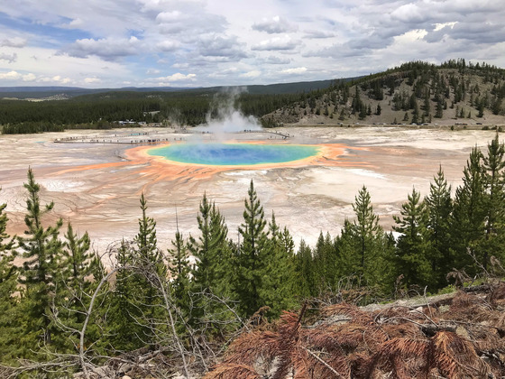 Grand Prismatic Spring from boardwalk high above.