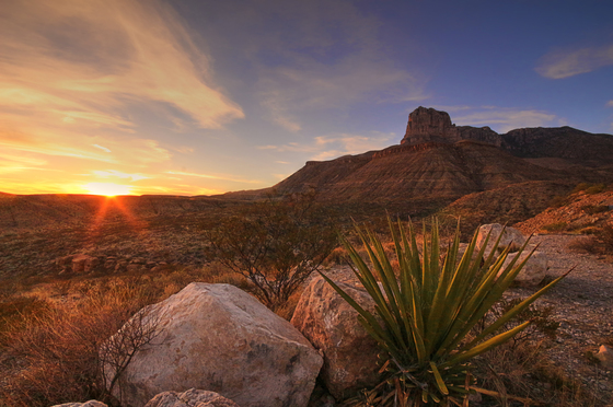 El Capitan Sunset - El Capitan Mountain at sunset in Guadalupe Mountains National Park. The view is from the pull-off on Federal 62.