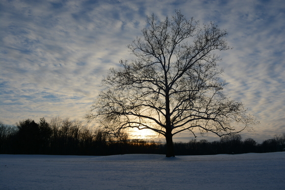Sunset over the snow covered mounds at Hopewell Culture National Historical Park.
