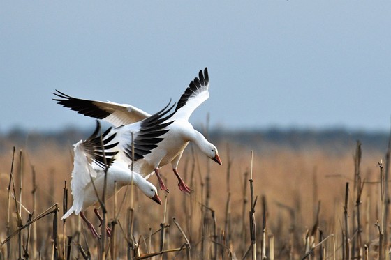 Snow geese landing in corn field. "Coming In For Landing"