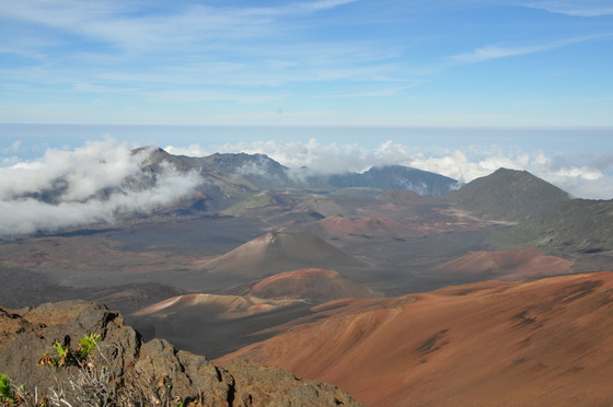 The view into Haleakala caldera is best in the afternoon. I took this photo at the visitor center before going up to the summit to view sunset. The next day we hiked down into the caldera, a gorgeous but strenuous hike.