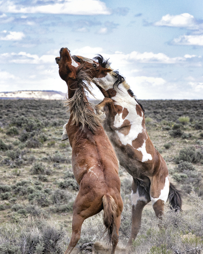 Picasso is an older paint who is fighting Voodoo for Spirit Dancer. It ended with Voodoo being chased off this morning. The Sand Wash Basin is located in Colorado near Dinosaur Monument and is home to many wild horses.