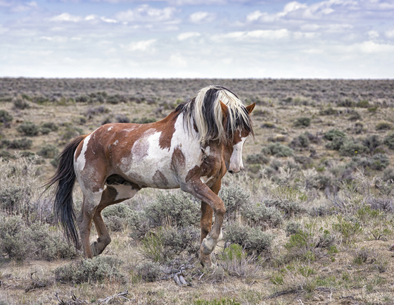 Picasso Prancing This is Picasso, my favorite mustang, after he won the day's battle with Voodoo, thus keeping his mare, Spirit Dancer. He is nearing 30 years old and still free and wild. What a beauty! For me, Picasso exemplifies the American West.