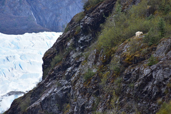 Dall Sheep and calf climbing cliffs at Mendenhall Glacier