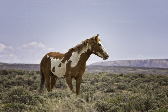 Handsome Paint, a Colorado Mustang in the Sand Wash Basin Herd Management area near Maybell, Co. There were many mustangs running free this day in April. I felt so lucky to be able to spend the day with them.