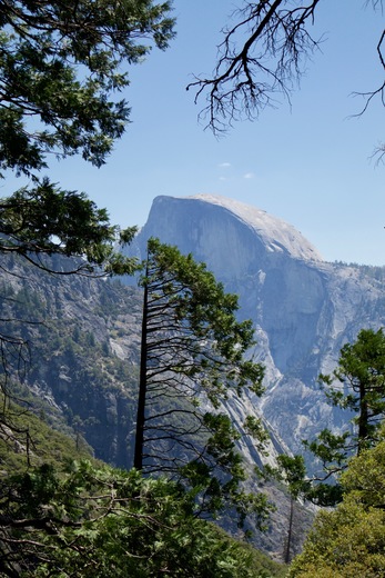 A tree mimics the shape of Half Dome viewed from the Yosemite Falls Trail. June 25, 2018.
