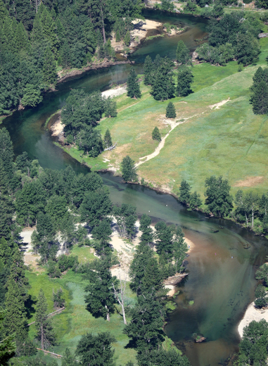 Curves in the Merced River viewed from halfway up the 4 Mile Trail to Glacier Point. June 27, 2018.